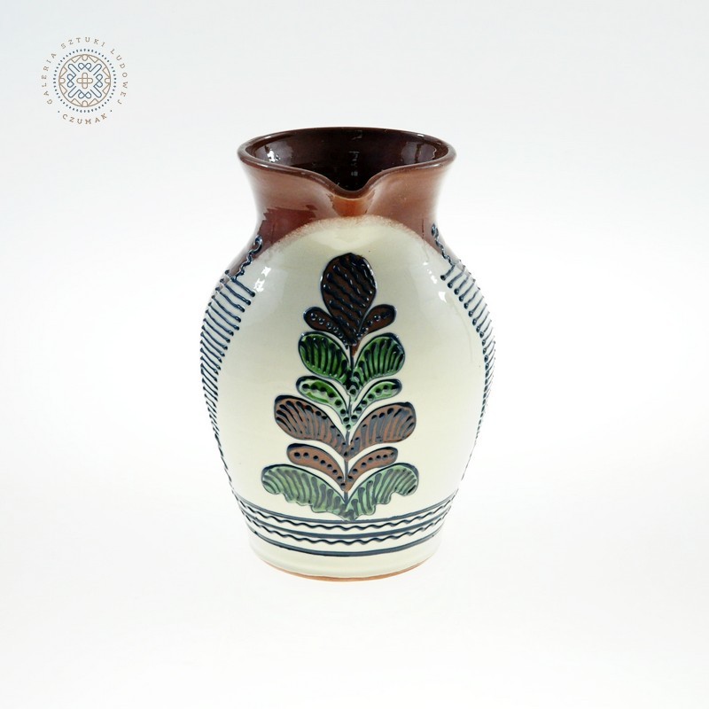 Oryginalny dzban ludowy z rumuńskiego Marmaroszu z przedstawieniem wyobrażonego drzewa życia. Tradycyjna technika produkcji w małym rodzinnym warsztacie.